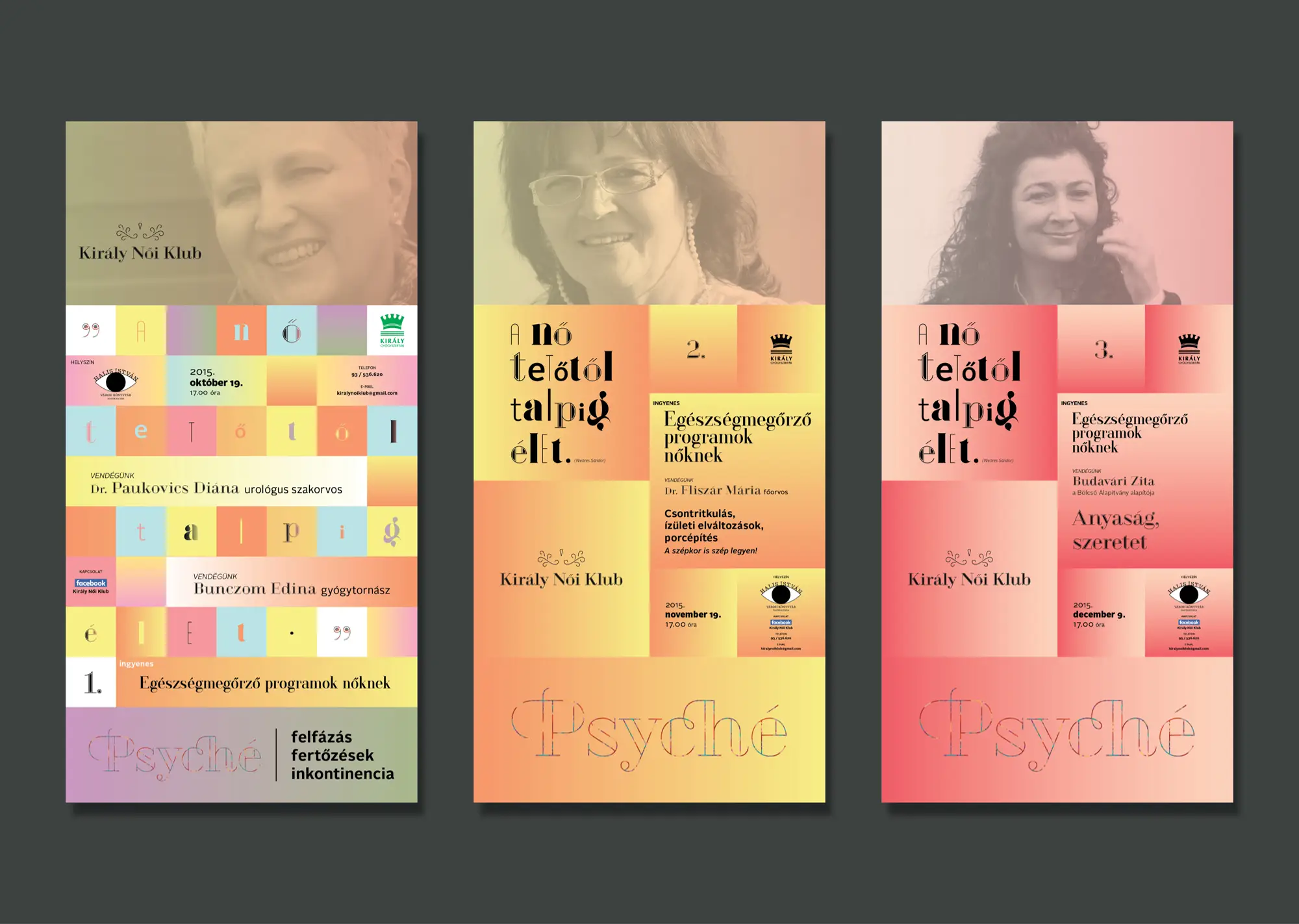 Az egészségügyi ismeretterjesztésen, tájékoztatáson túl egy lazább-szorosabb közösség kialakítása volt a másik célkitűzés Király Női Klub elnevezéssel. A 2015 őszén induló rendezvénysorozat a Psyché címet kapta, a következő értelmező alcímmel: